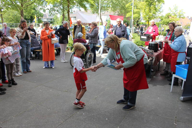 Op maandag 5 mei was de prijsuitreiking zijn (ong. 14.00 uur) tijdens de Dorpssoep op het plein voor De Binder.
